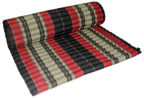 Traditional Thai Kapok Roll-Up Meditation Mattress for Yoga Massage or Relaxation (Black, Red)