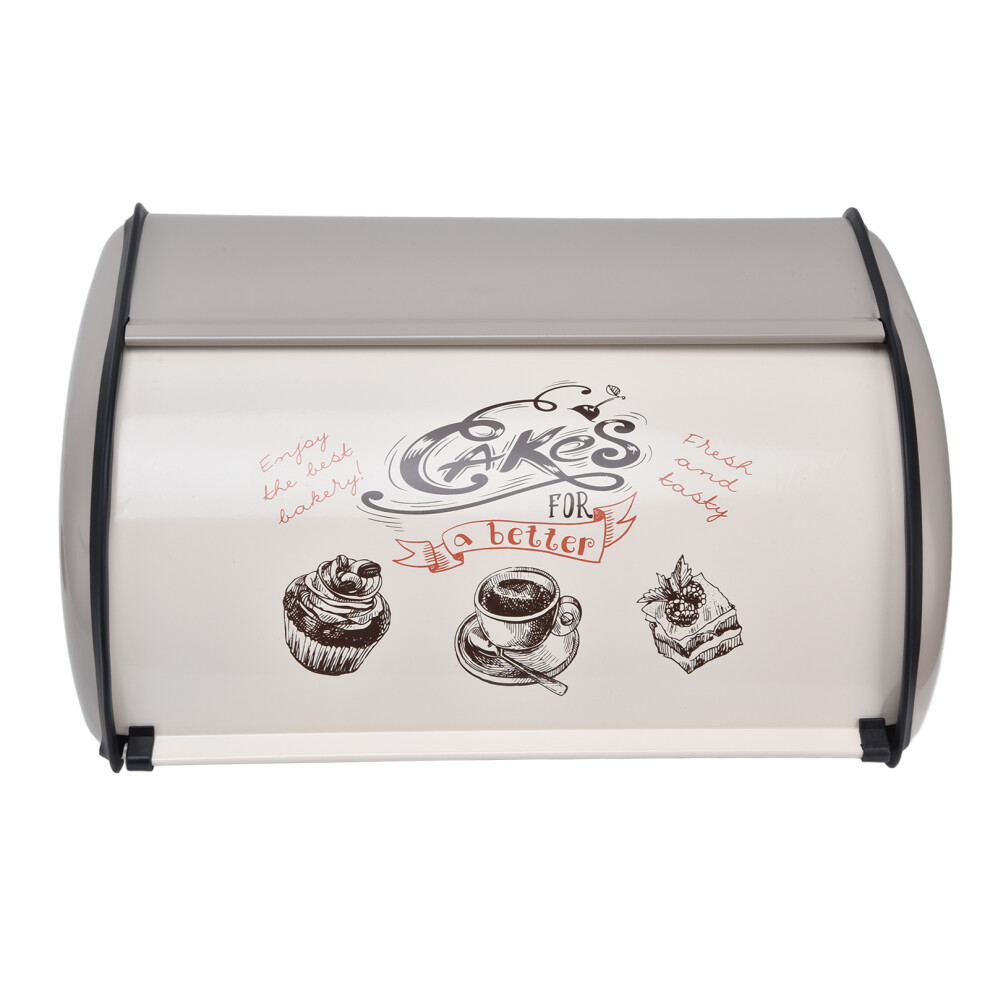 Roll Top Metal Bread Bin Bread Container Keeper Organizer for Kitchen8413