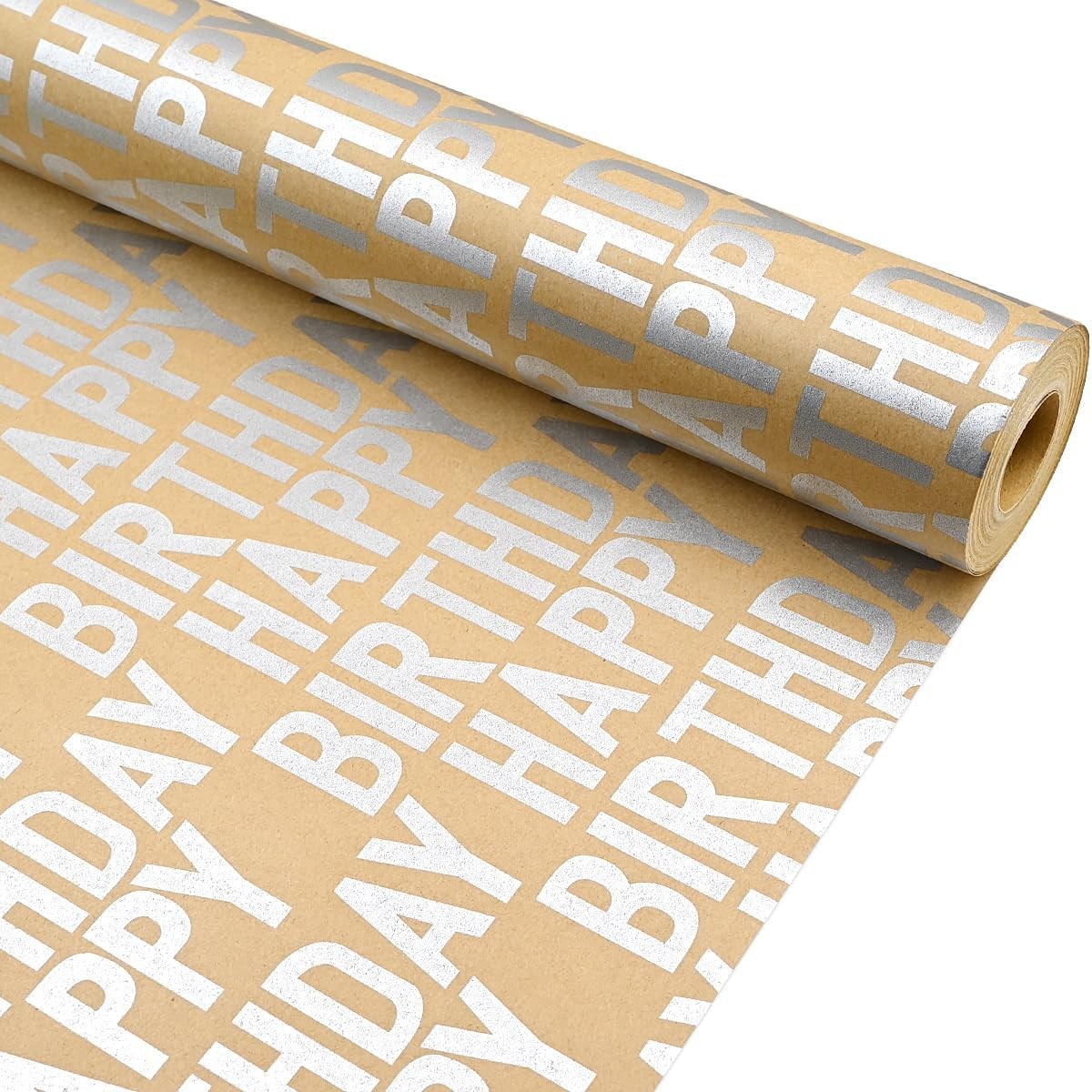 43Cm*12M Silver Birthday Wrapping Paper Roll,Eco Gift Wrap Paper Perfect for Pac
