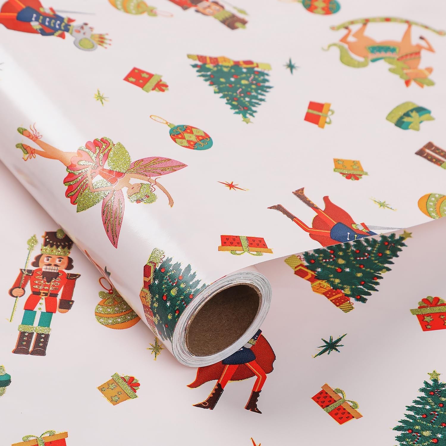 WRAP STORM Christmas Wrapping Paper Roll – 43cm x 6m Nutcracker & Fairy Glitt