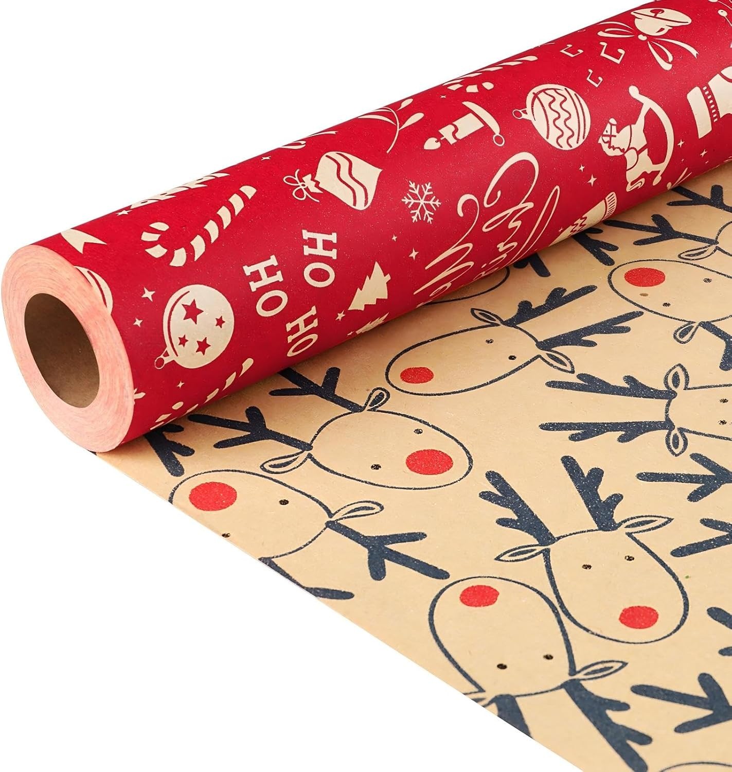 Christmas Wrapping Paper Roll, Xmas Gift Wrap Paper with Double-sided, 43cm*10m