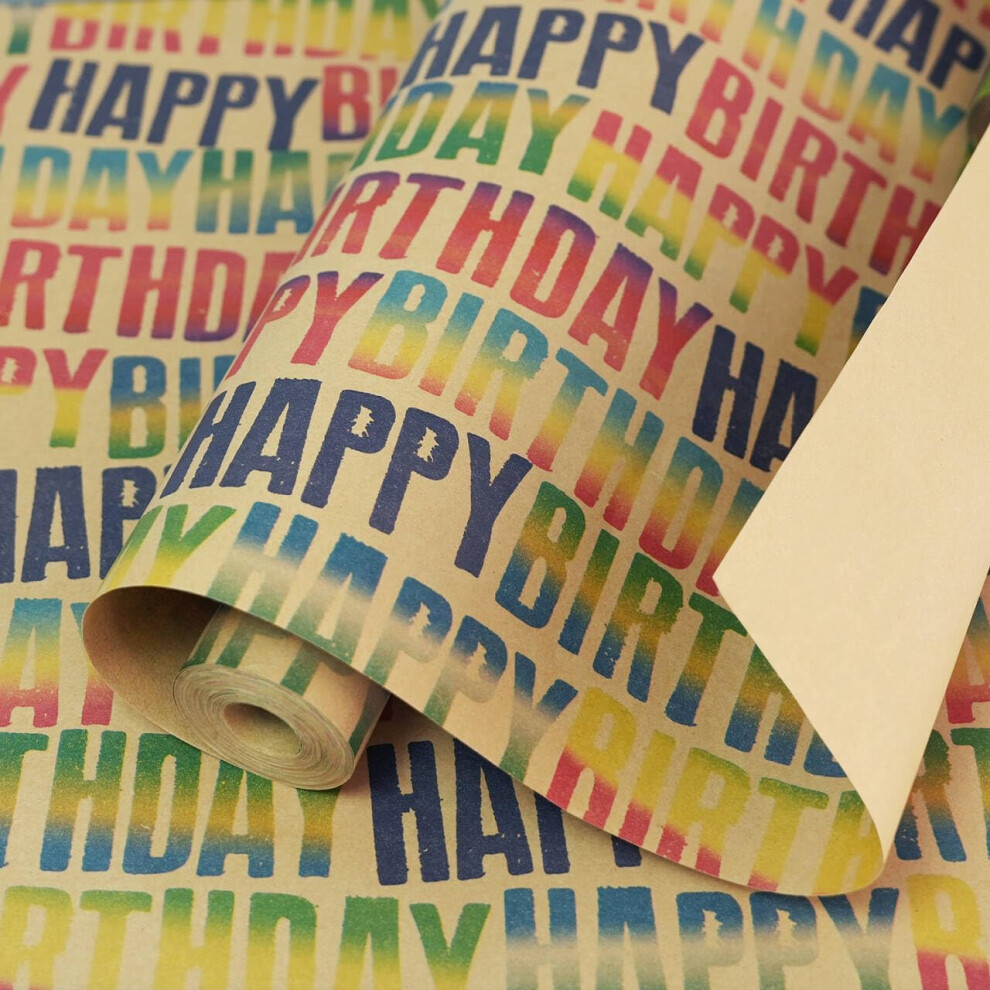 MAMUNU Birthday Wrapping Paper Roll Colorful Happy Birthday Kraft Gift Wrapping Paper Jumbo Roll Gift Wrap Paper Set for Boys Girls Men Women 17 x