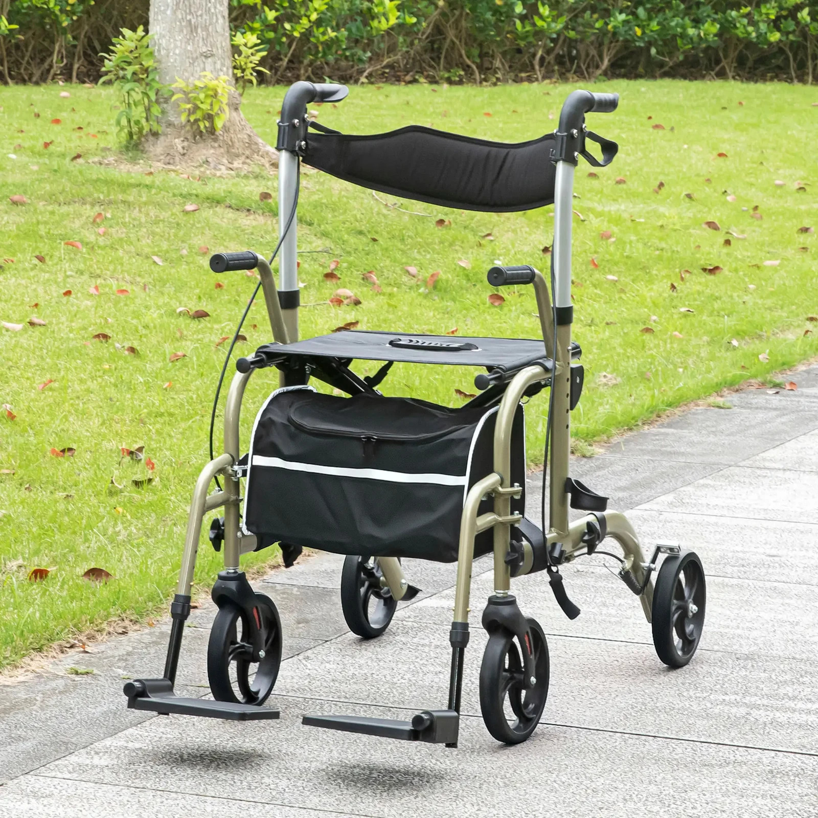 Wheelchair Transport Chair Seniors 2in1 Folding Rollator Walker Footrest Seat