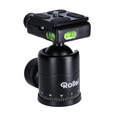 Rollei Tripod Ball Head for Compact Traveler No1 Aluminium Black, Professional 360 Degree Tripod Head with Friction, 8 kg Load Capacity and 3 Spirit Levels. Includes Acra Swiss Quick Release Plate