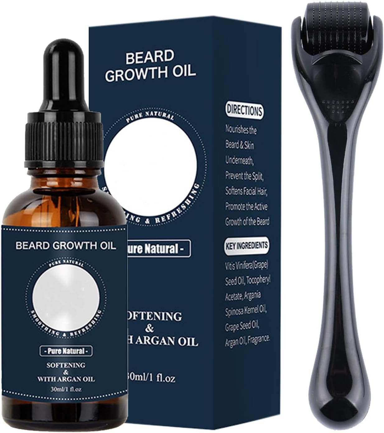 Beard Growth Kit,Beard Oil Beard Growth Serum for Men,0.5Mm Derma Roller for Bea