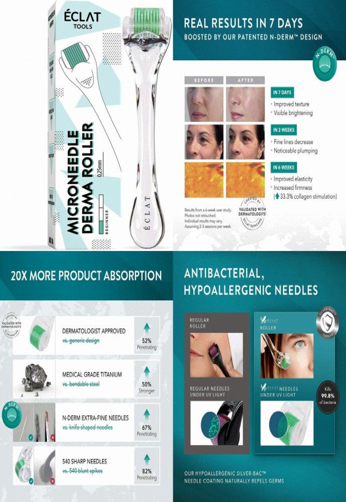 Eclat Advanced Derma Roller 540 N-Derm™ Extra-Fine Needles (0.5mm) Medical-Grade