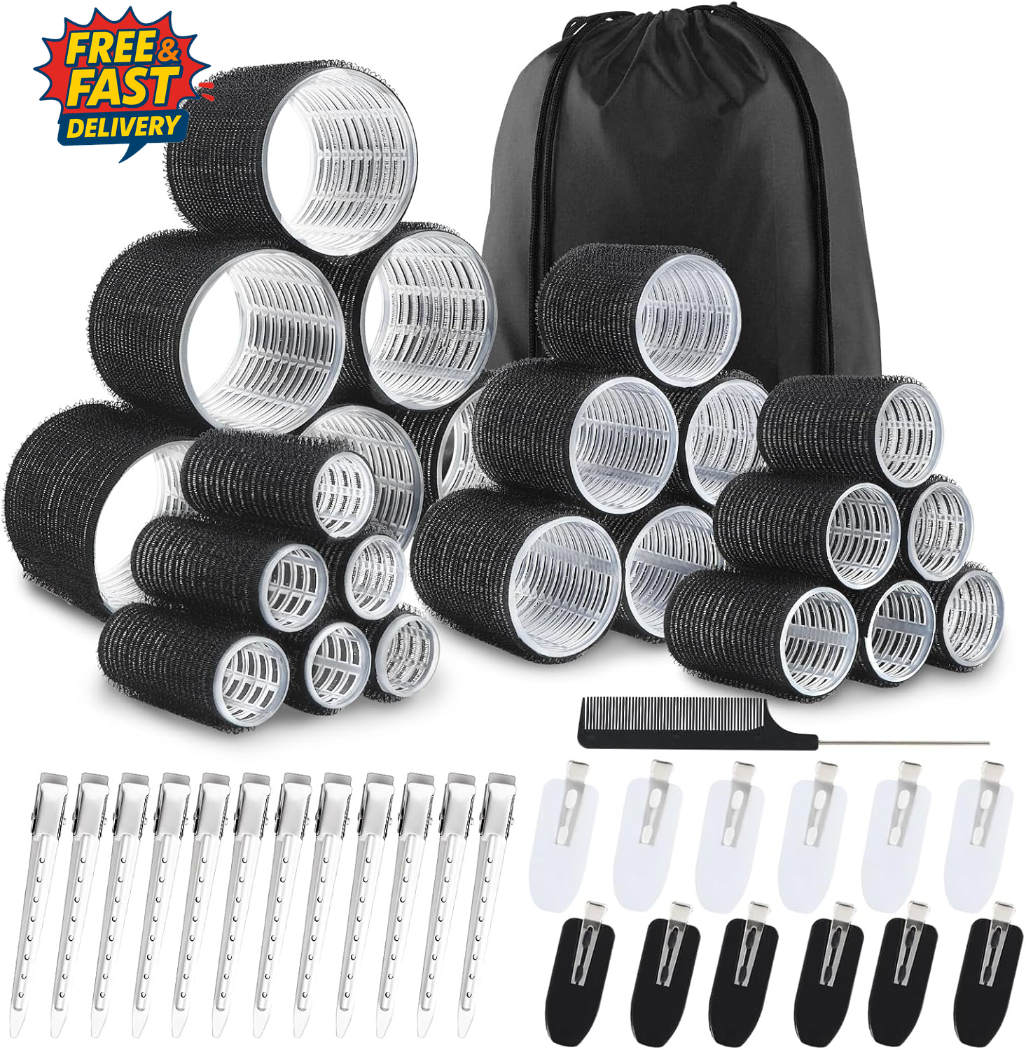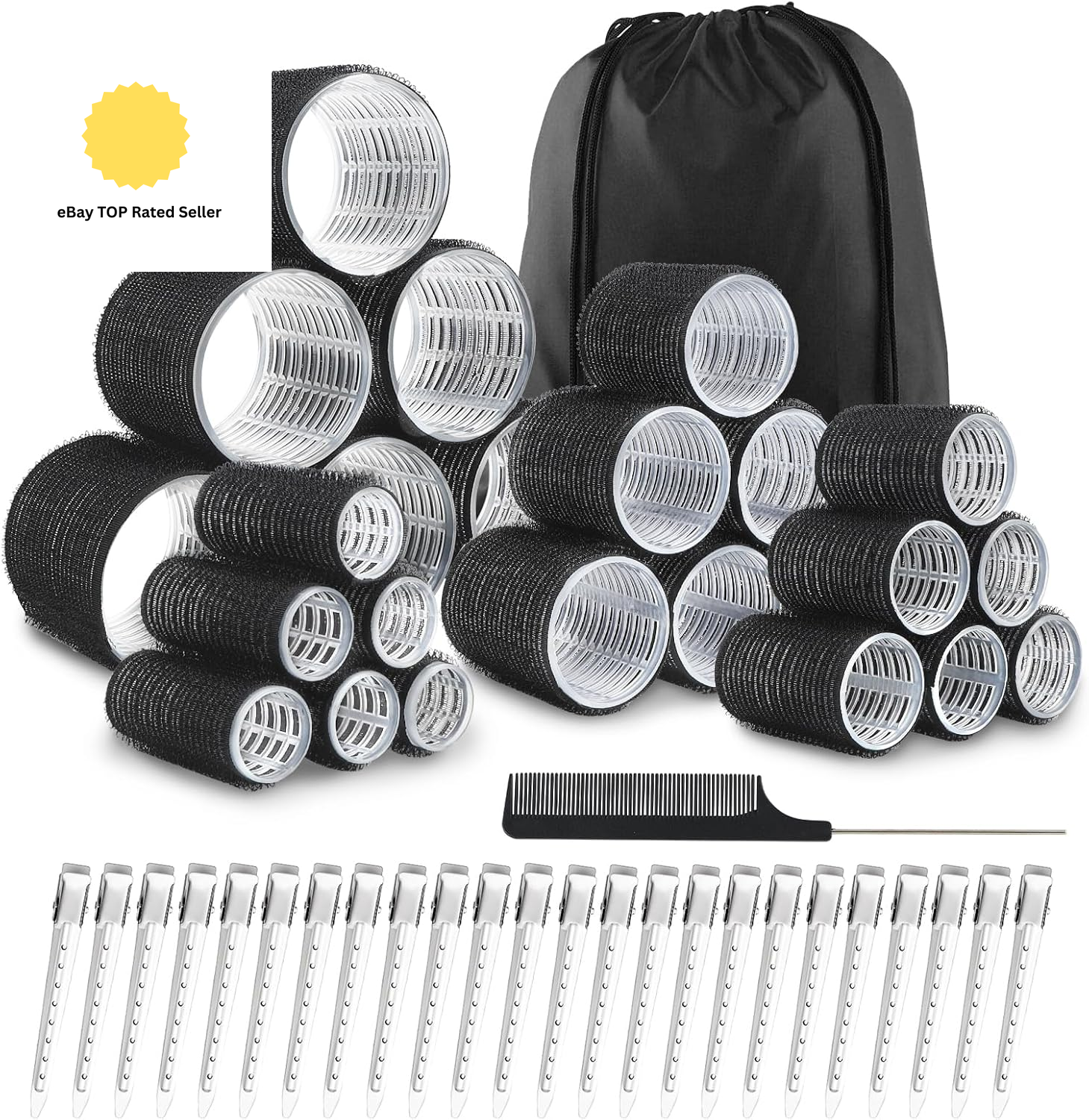 Frozzky 37-Piece Hair Rollers Set For Long Hair, Curlers, Clips & Combs