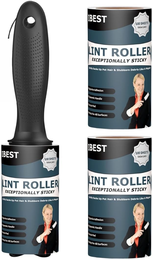 iBest UK Lint Rollers For Pet Hair, Clothes, Carpet | Sticky Flint Fluff Dust Lint Remover | Pack of 3 Reusable Refills (100 Sheets)