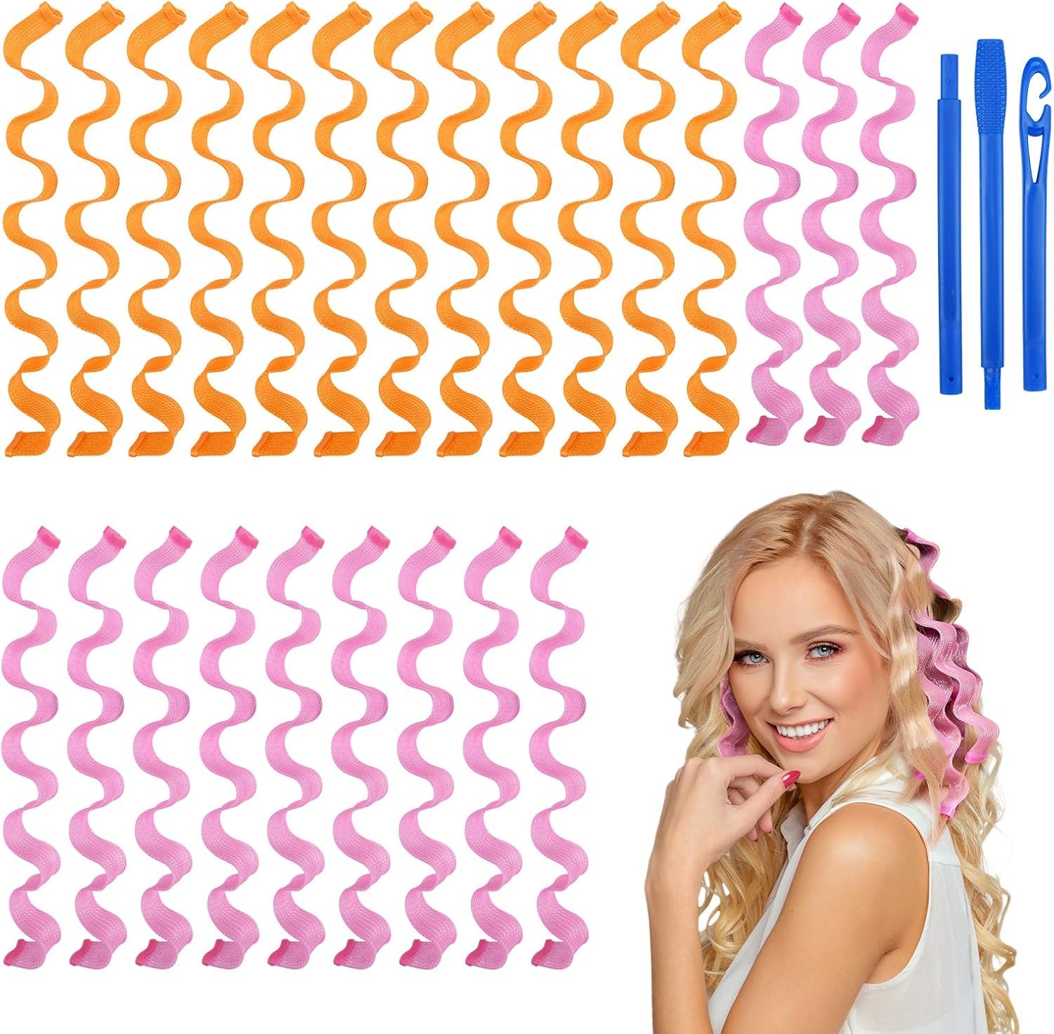 URAQT Hair Rollers for Long Hair, 24Pcs 50cm Hair Curlers No Heat Spiral Curls,