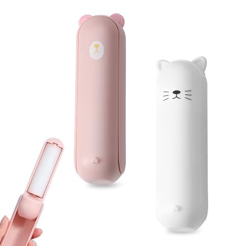 2 PCS Reusable Lint Roller, Washable Clothes Roller Sticky Mini Lint Rollers for Pet Hair, Lint Removers for Clothes, for Cat Dog Pet Hair Carpets Sofas (White, Pink)