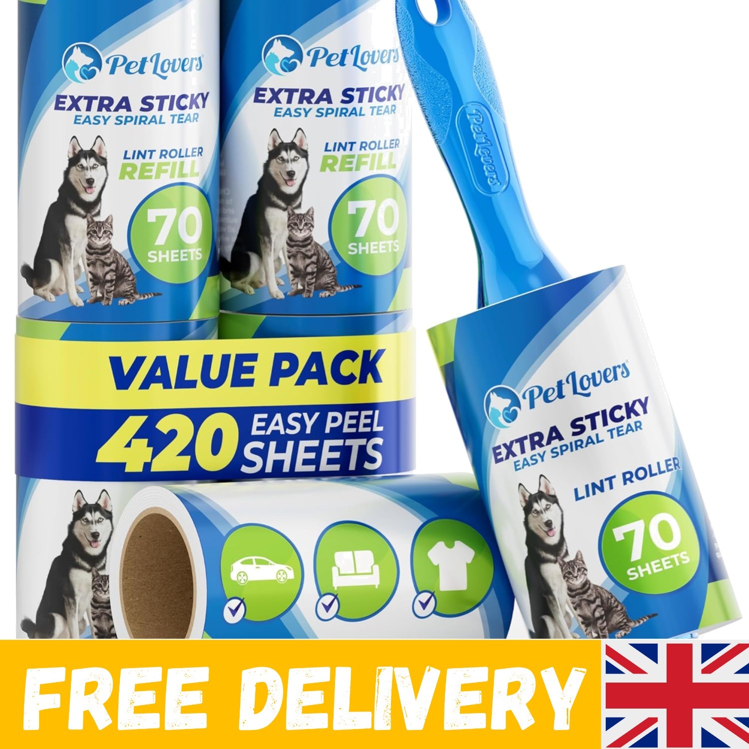 iBest UK Lint Rollers For Pet Hair, Clothes, Carpet | Sticky Flint Fluff Dust L