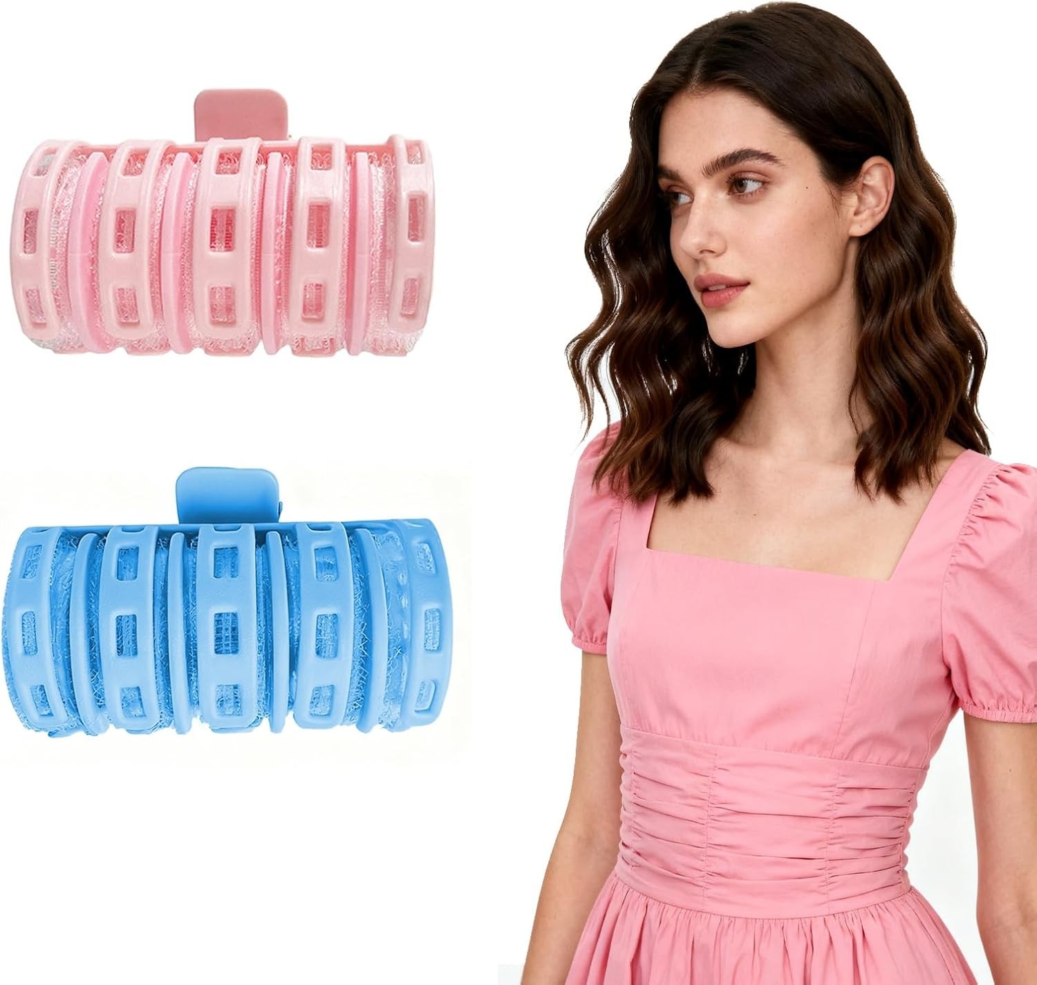 2 Pcs Hair Rollers with Clips, Rollers for Hair Volume, Curlers No Heat Hair, R