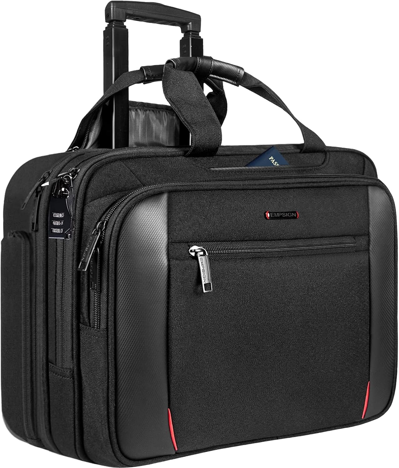Arcoyard Rolling Laptop Bag, 17.3 Inch Computer Bags with Wheels, Black, Anti-theft Combination Lock