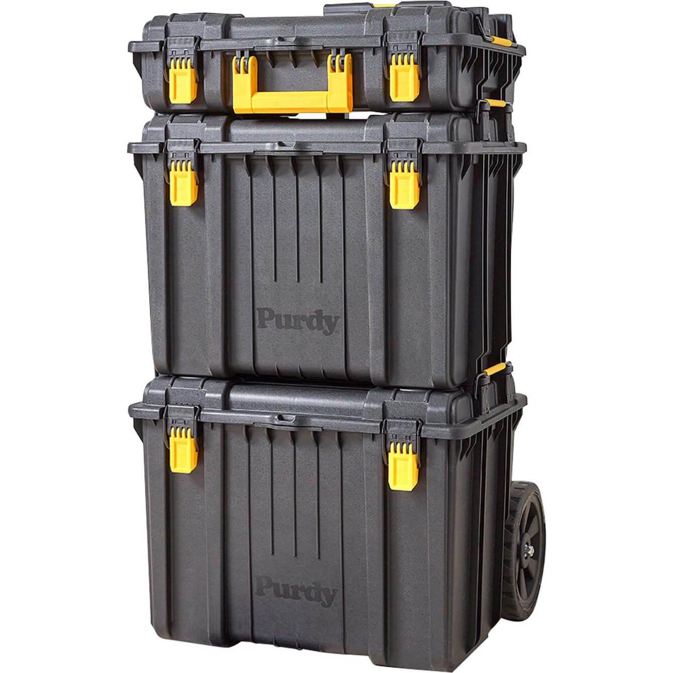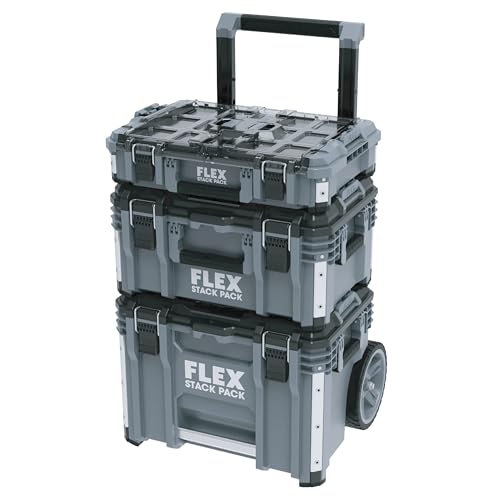 Flex - Stack Pack Rolling Tool Box, 3 Pc Set - With Gas Struts 9 Inch Wheels - Made of Impact Resistant Plastic with Aluminium Reinforced Corners, Metal Latch and + - 531461