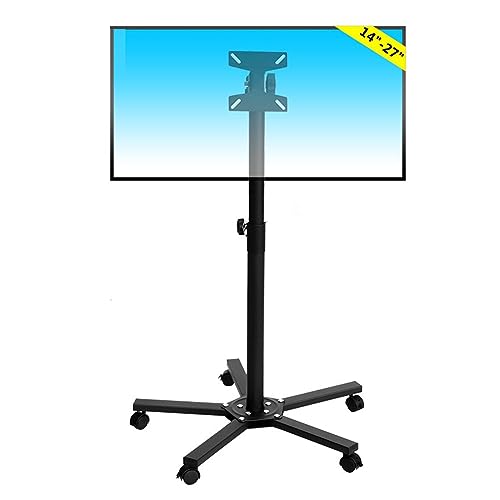 HYJYGM Mobile TV Cart for 14-27 Inch Screen, Height Adjustable Rolling TV Stand with Angle Adjustment, 360° Rotation, Max 100x100mm