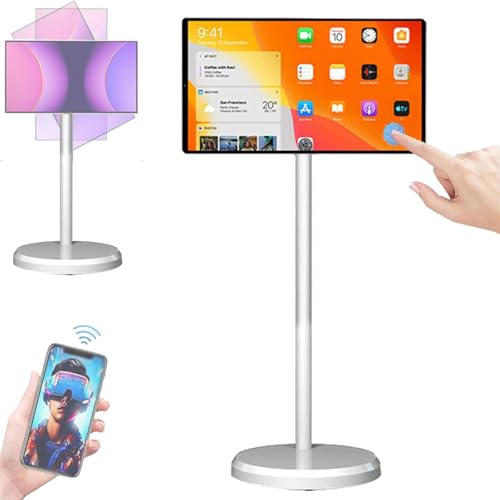 21.5-Inch Smart Touchscreen Monitor,1080p Smart Rolling TV with Stand,4+64gb Ram Digital Signage Display,1920 * 1080p Touchscreen, Wireless Projection Support(White)