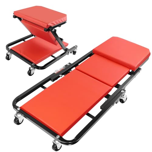 Garvee Mechanic Stool, 300 Lbs Capacity, Garage Seat with Wheels, Rolling Workshop Stool Heavy-Duty, for Garage, Shop & Auto Repair, Red