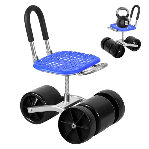 gibxiyza Garden Stool with Wheels, Height Adjustable Garden Cart Rolling Workseat, Foldable Workshop Garage Stool with 360 Degree Swivel Seat for Patio, Yard, and Outdoors