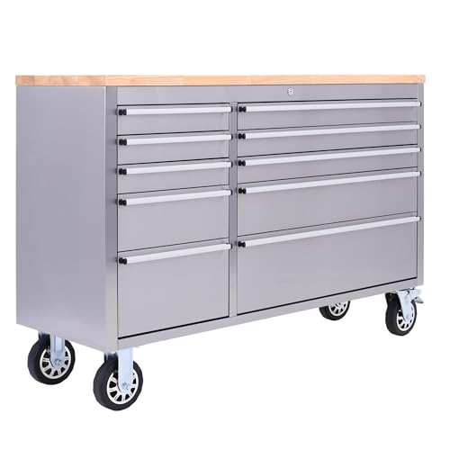 ParkerBrand.com 55" Stainless Steel 10‑Drawer Roller Tool Cabinet – Workshop Rolling Tool Chest with Ball‑Bearing Drawers