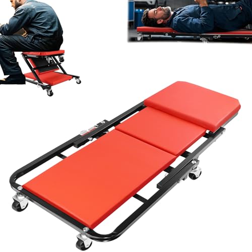 Mechanics Creeper Seat, 2-in-1 Folding Car Creeper and Seat, 36 Inch Length Padded Mechanics Creeper Stool with Soft Cushion and Wheels, Rolling Seat Garage Workshop Crawler,150kg Load Capacity