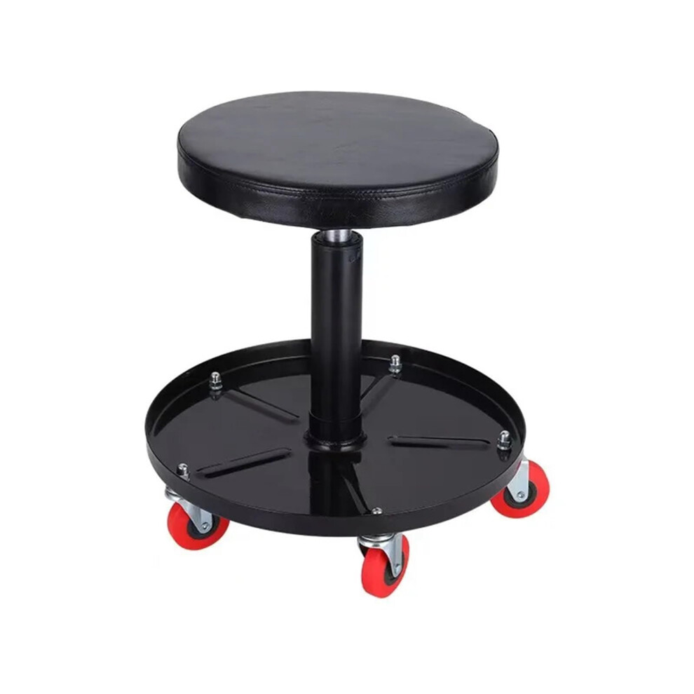 Adjustable Mechanics Seat Rolling Workshop Chair with Swivel Function, Red Round Stool, Car Repair Lift Stool