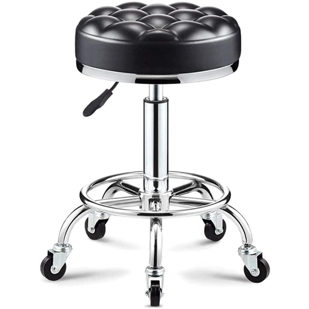 CASARIA® 35cm Black Rolling Stool with Wheels | Height Adjustable | 360° Rotatable Padded Swivel Roll Chair | Double Castors | Comfortable Upholstered Seating | Office Workshop Salon