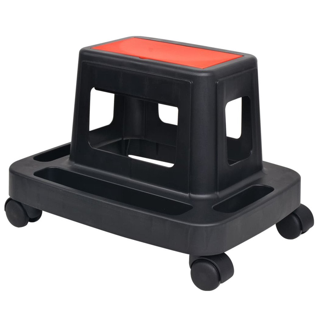 Workshop Rolling Stool Black Red Plastic 45x34x32 cm Storage Seat150kg Castors