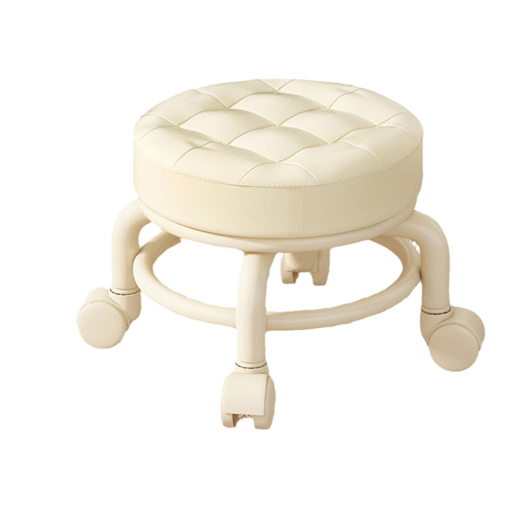 CASARIA® 35cm White Rolling Stool with Wheels | Height Adjustable | 360° Rotatable Padded Swivel Roll Chair | Double Castors | Comfortable Upholstered Seating | Office Workshop Salon