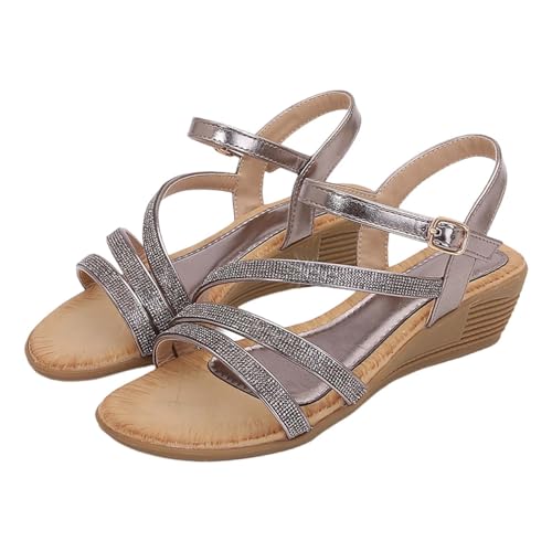 BVEBJDX Women's Rhinestone Roman Sandals UK Sale Clearance,Ladies Back Zip Ankle Wrap Sandal Open Toe Hollow Out Shoes Wedge Sandals Summer Dressy Sandal Diamond Round Toe Slides Casual Slippers
