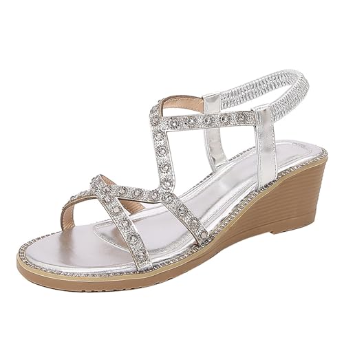Cocila Walking Sandals For Women Uk Roman Summer Ethnic Open Toe Thick Bottom Slope Heel Women'S Shoes (Silver, 6) Womens Wide Fit Size 7 Soft Party Sparkly Flat Holiday Cushion-Walk Navy White