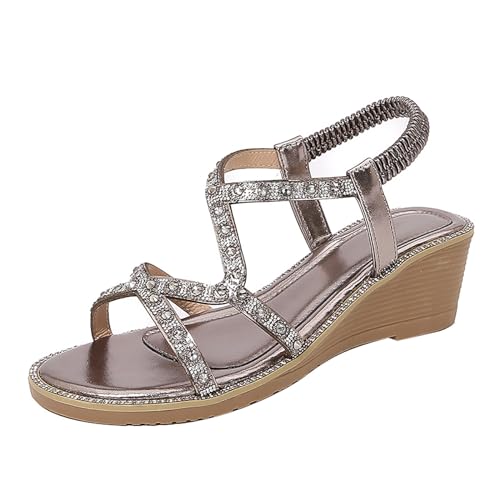 Cocila Comfy Sandals For Women Uk Roman Summer Ethnic Open Toe Thick Bottom Slope Heel Women'S Shoes (Grey, 6) Wide Fit Silver Green Heels Elasticated White Footwear Diabetic Womens Comfort