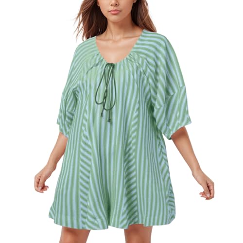 Playsuits For Women Uk Holiday, Womens Jumpsuit Overalls Jumpsuits Summer Rompers For Women Casual Striped Puff Short Sleeve Adjustable Neck Wide Leg Oversized Jumpsuit With Pockets (Green S)