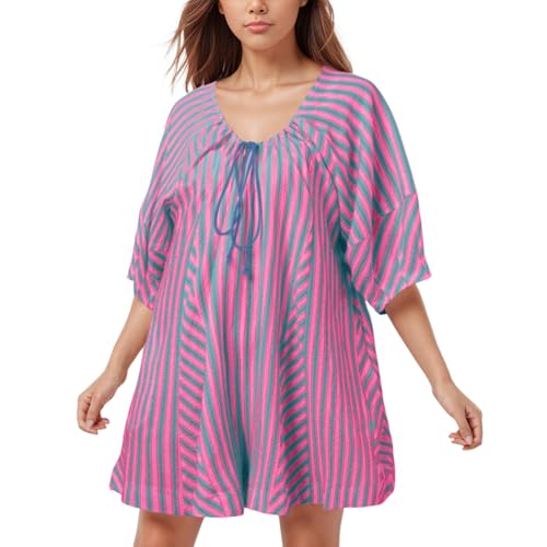 Playsuits For Women Uk Sexy, Womens Jumpsuit Summer Overalls Jumpsuits Summer Rompers For Women Casual Striped Puff Short Sleeve Adjustable Neck Wide Leg Oversized Jumpsuit With Pockets (S)