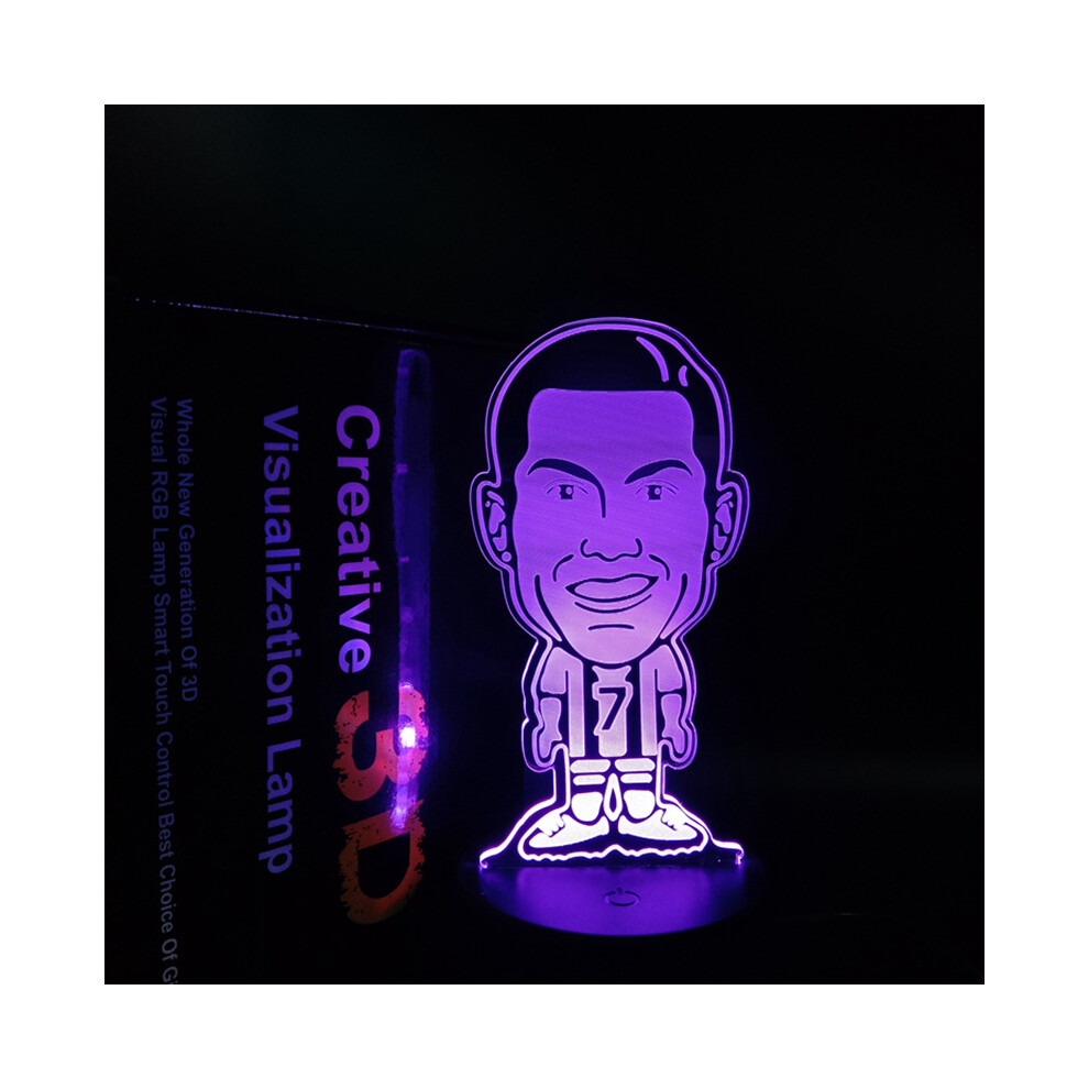 (Touch colorful set, Cartoon Ronaldo) New Premier League Champions League 3D Team Flag Night Light Fan Gift LED Touch Remote Control Light Team Gift 3