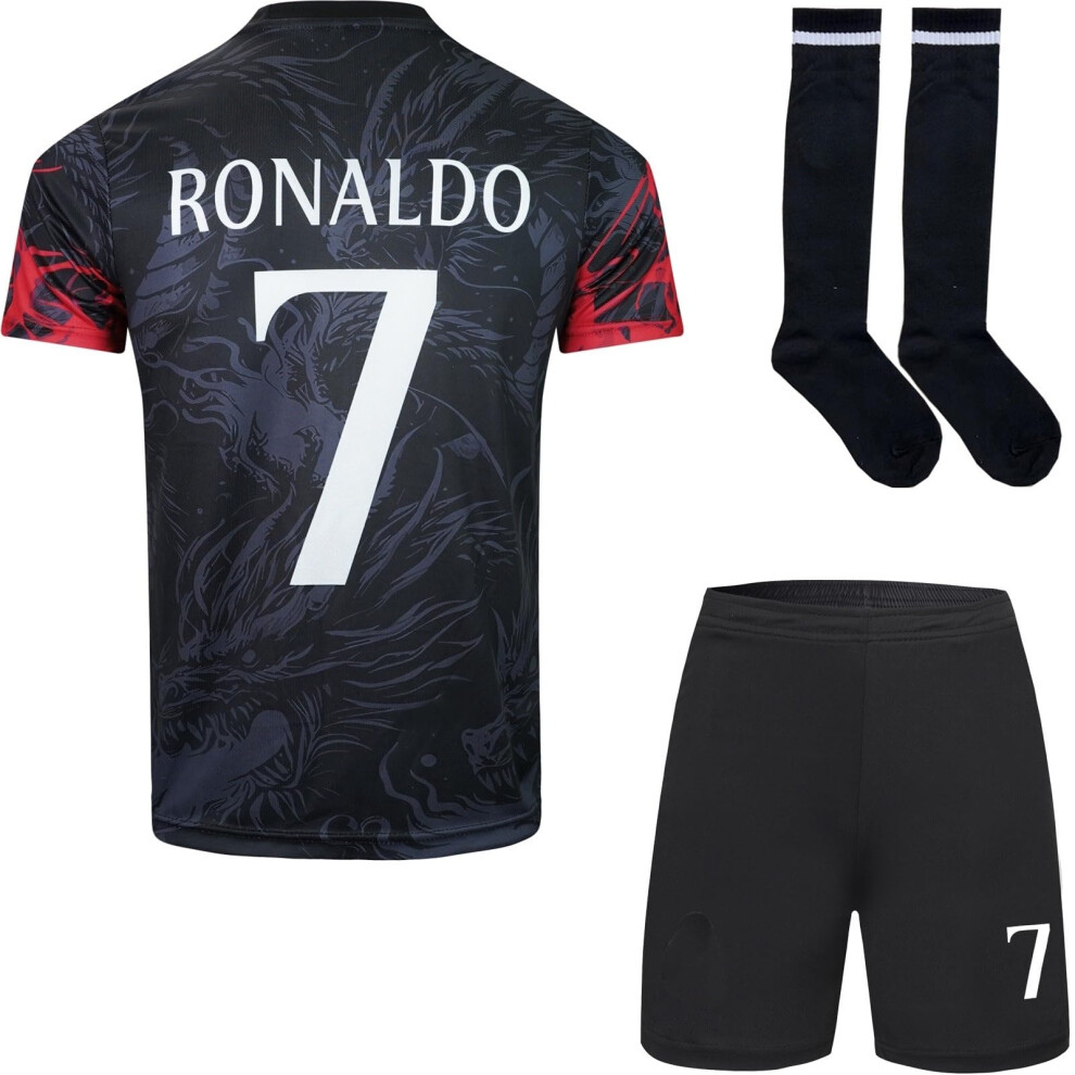 RAWDEM Madrid Ronaldo #7 Dragon Special Limited Edition Football Soccer Jersey/Shorts Socks Gift Set for Children Youth Sizes (Black, 30)