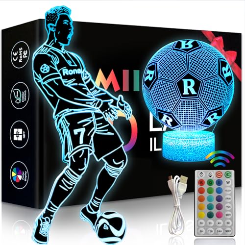 2 Patterns Ronaldo Night Light Set, 16 Colors 3D LED Illusion Lamp With Remote Control and Smart Touch, Champions League Football Gift for Boys, Fans and Kids
