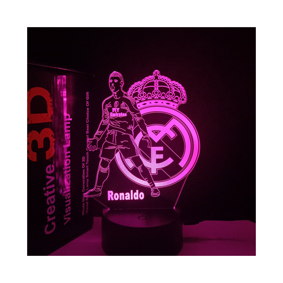 (Touch colorful set, Ronaldo Real Madrid) New Premier League Champions League 3D Team Flag Night Light Fan Gift LED Touch Remote Control Light Team Gi
