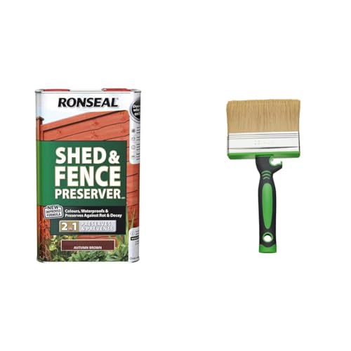 Ronseal RSLSFAB5L 5 Litre Shed and Fence Preserver - Autumn Brown & Fit for The Job 4 inch Large Capacity Shed and Fence Block Brush for Rapid Painting