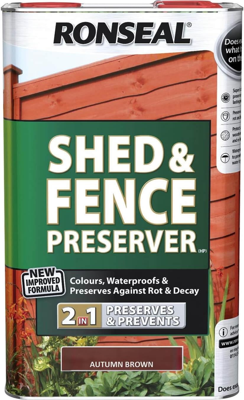 Ronseal RSLSFAB5L 5 Litre Shed and Fence Preserver - Autumn 5L, Brown