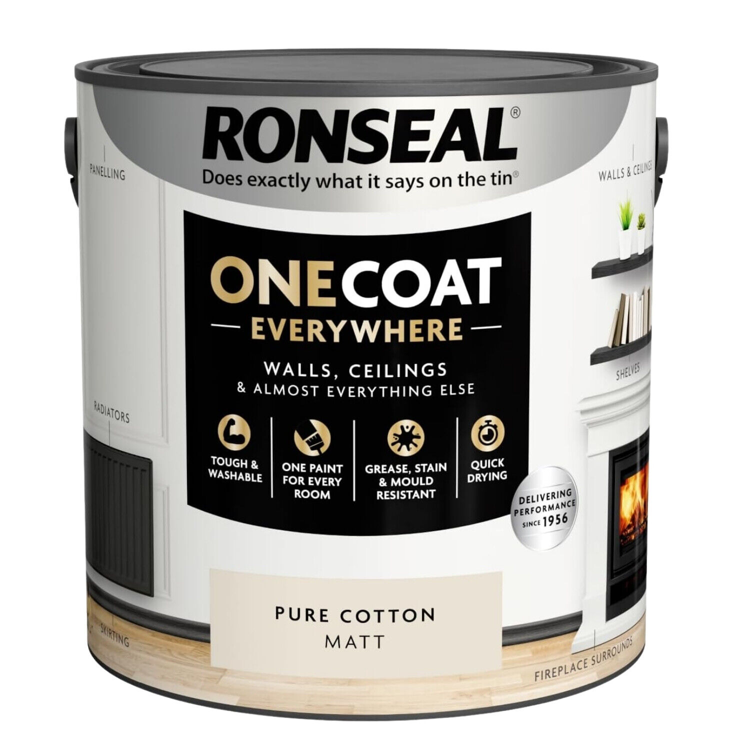 Ronseal Paint One Coat Pure Cotton Matt Quick Dry Stain Mould Resistant 2.5L