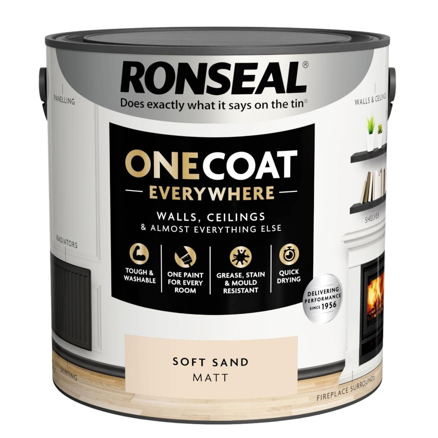 Ronseal Paint One Coat Soft Sand Matt Quick Dry Grease Mould Resistant 2.5L