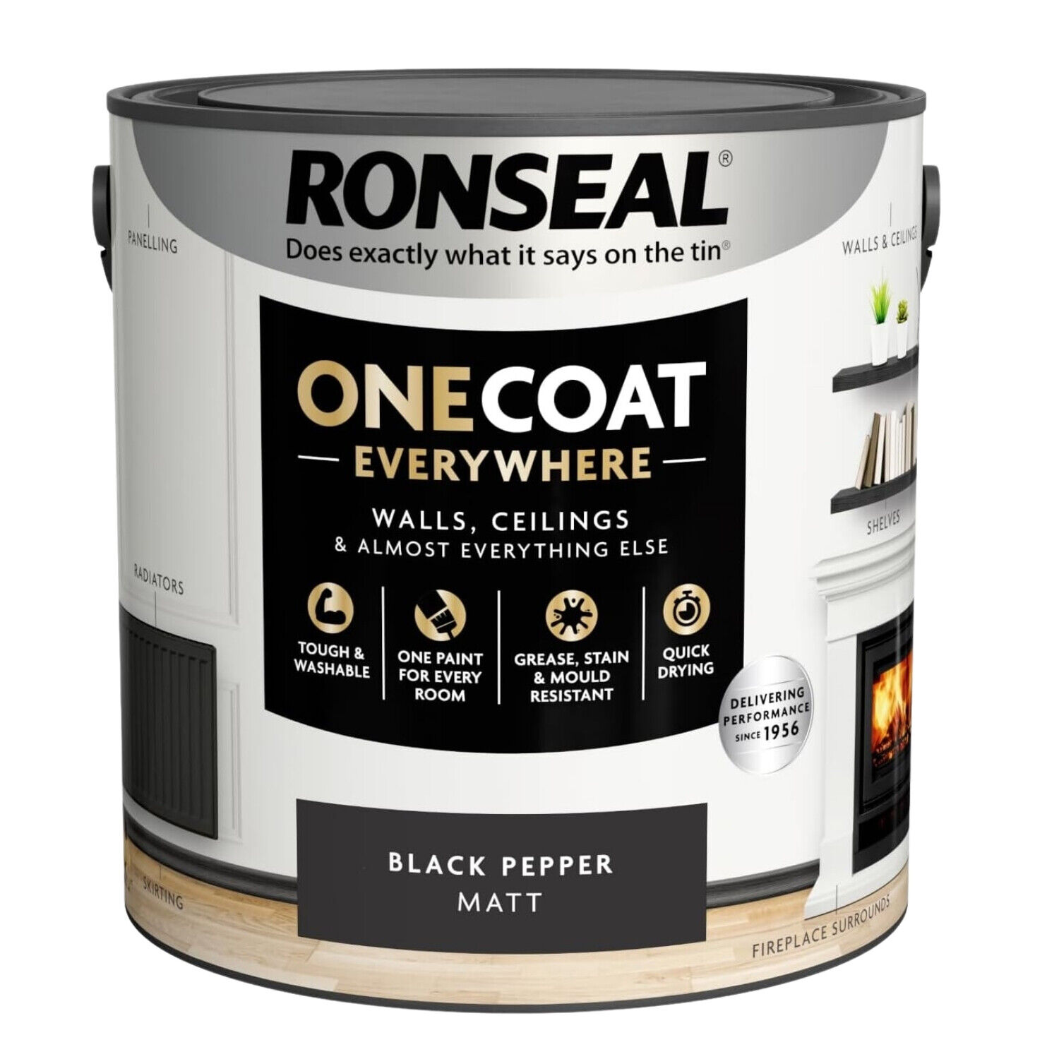 Ronseal Paint One Coat Black Pepper Matt Quick Dry Stain Mould Resistant 2.5L