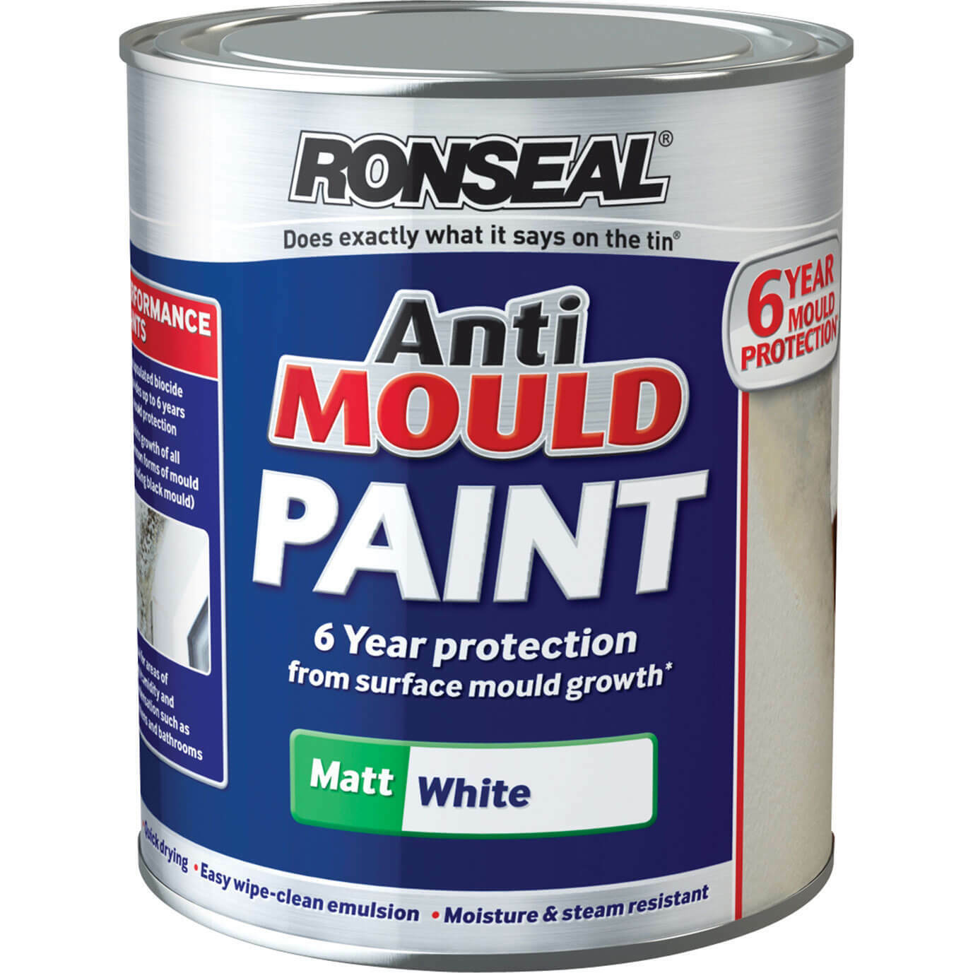 Ronseal 6 Year Anti Mould Paint White Matt 750Ml RSLAMPWM750