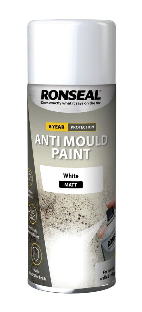Anti Mould Spray Paint White Ronseal 6 Year Quick Dry 400ml for Walls & Ceilings