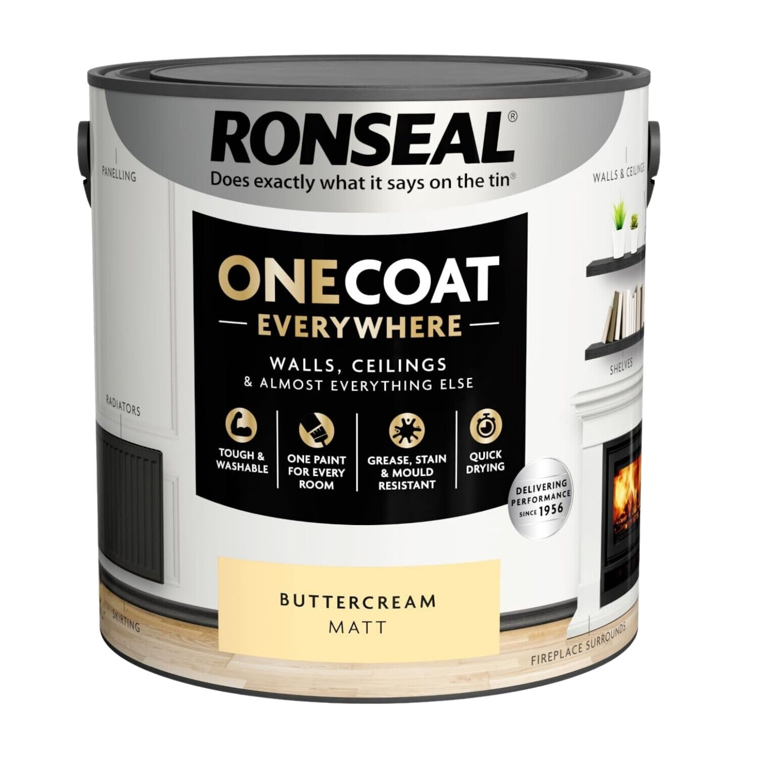 Ronseal Paint One Coat Buttercream Matt Quick Dry Stain Mould Resistant 2.5L