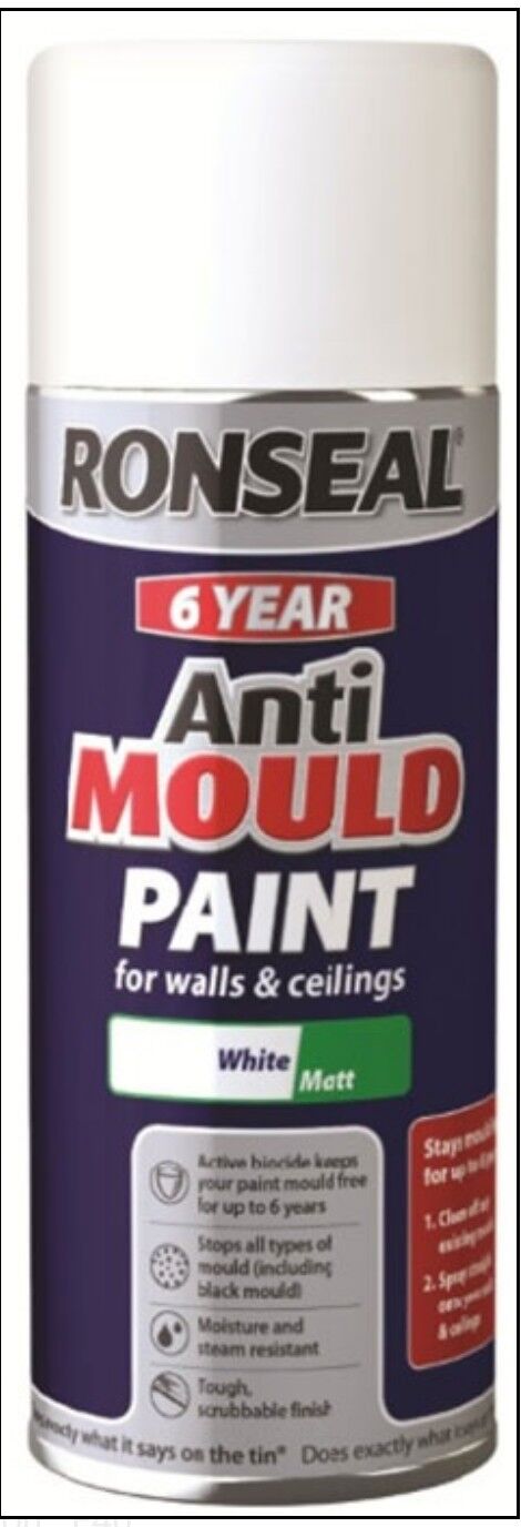 Ronseal Quick Dry Anti Mould Spray Paint White 400ml Aerosol Lasts 6 Years. 3748