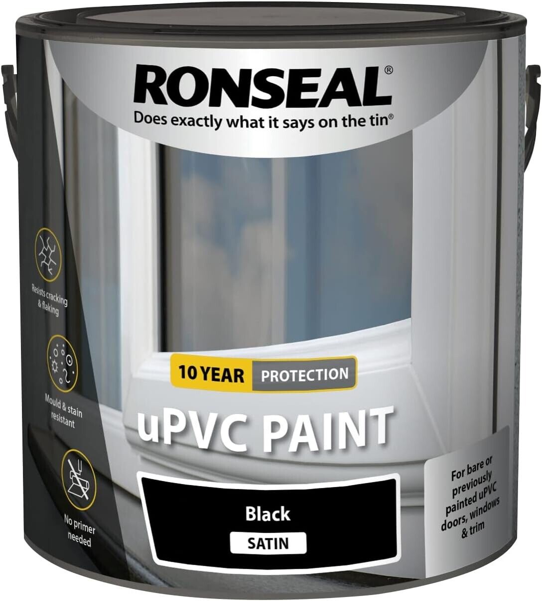 Ronseal uPVC Windows Doors Trim Mould Stain Protection Satin Paint 2.5L - Black