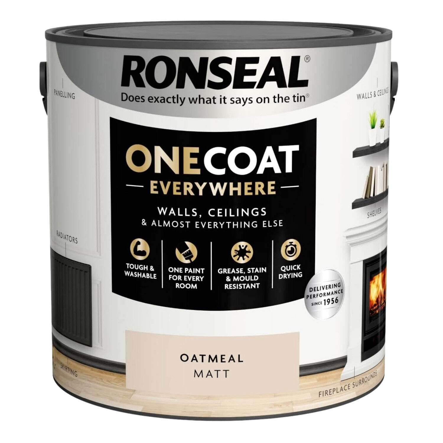 Ronseal Paint One Coat Oatmeal Matt Quick Dry Grease Stain Mould Resistant 2.5L