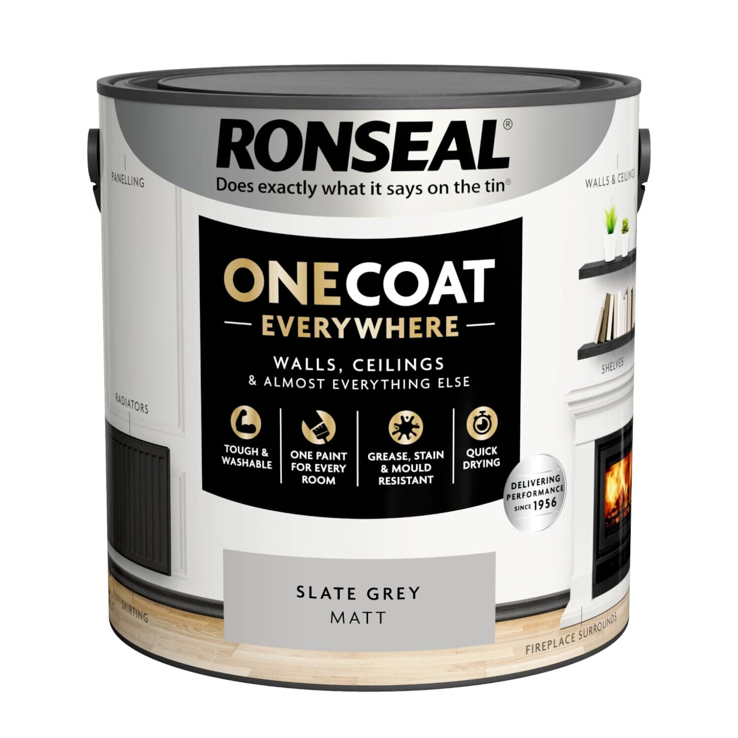 Ronseal Paint One Coat Slate Grey Matt Quick Dry Stain Mould Resistant 2.5L