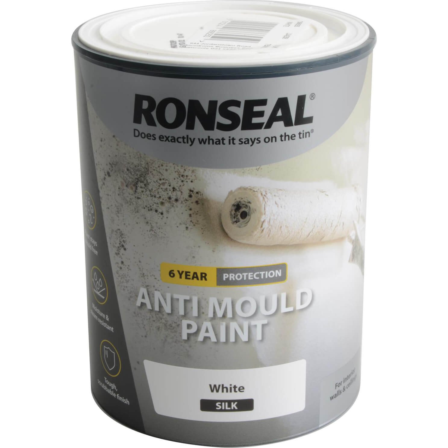 Ronseal 6 Year Anti Mould Paint White Silk 2.5 litre 36626